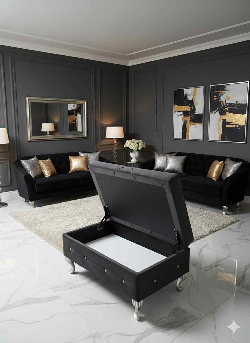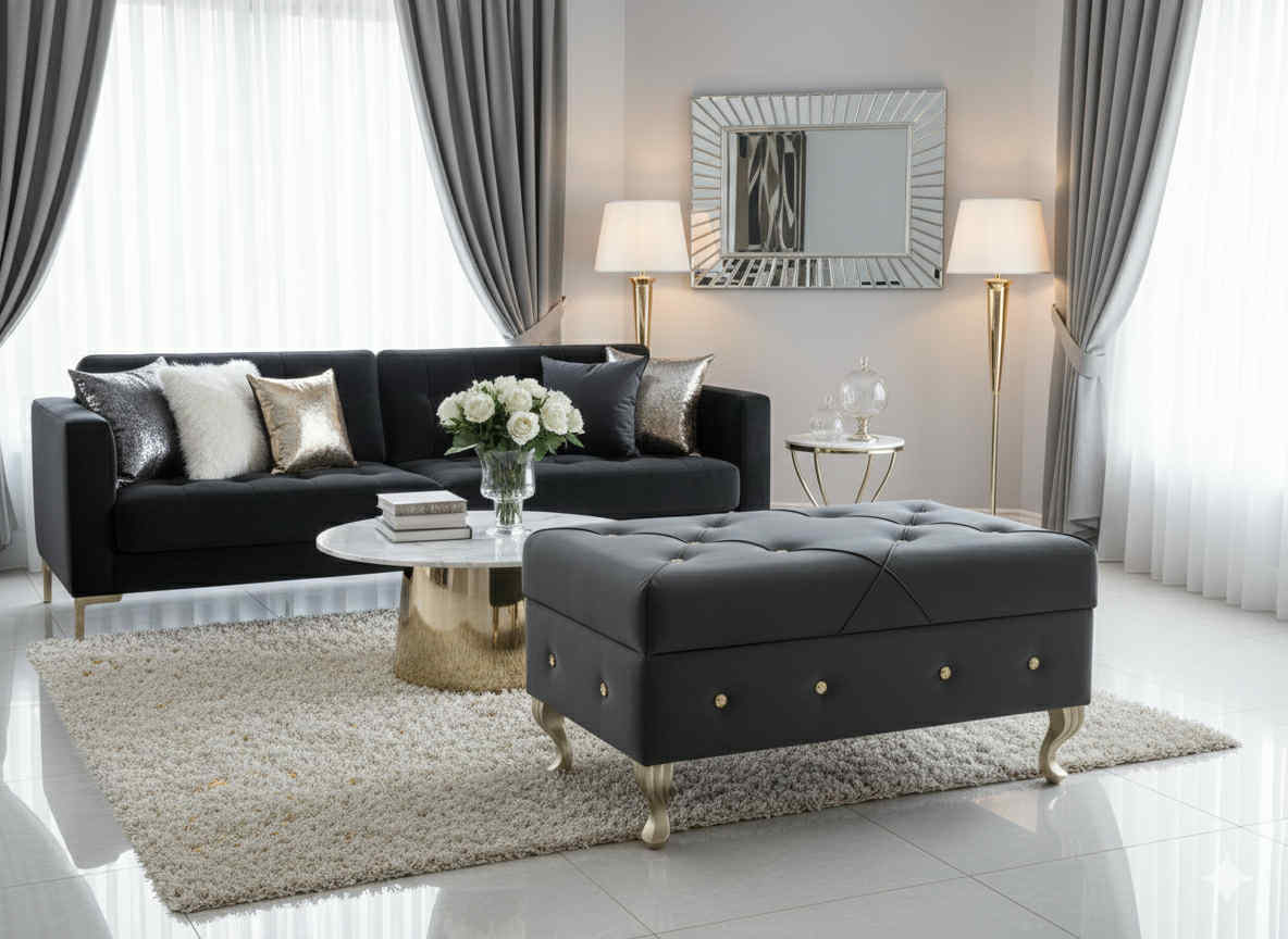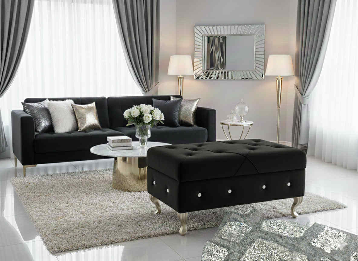 Dodaj nutę luksusu do swojego salonu dzięki pufie Ludwik w stylu glamour. Wykonana z wysokiej jakości tkaniny Kronos 7 w eleganckim czarnym kolorze, pufa zdobiona kryształkami i nogami w stylu ludwikowskim jest doskonałym dodatkiem, który połączy komfort i styl.