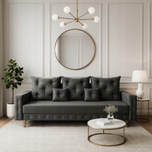 Kanapa Peria Glamour szara ze złotymi dodatkami